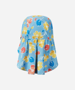 Stylisch geschützt: Der REIMA Kleinkinder UV Sonnenhut Mustekala | Frozen Blue schützt mit UV-Faktor 40+ zuverlässig vor Sonne. Mit langem Nackenschutz und weichem Schirm aus elastischem, recyceltem Material – leicht, ungefüttert und ideal für heisse Sommertage.
