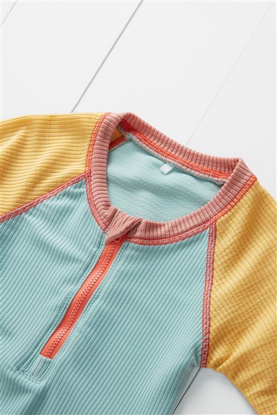 Mit dem gerippten, strukturierten Stoff aus recycelten Materialien hat sich die Marke Grass & Air an den Retro-Stil von Kinder-Badeanzügen angelehnt. Dieser spezielle gerippte Stoff wird aus Fabrikabfällen hergestellt, wodurch sichergestellt wird, dass alle Stoffreste verwendet und zu etwas Fantastischem und Tragbarem verarbeitet werden. Unser gerippter Stoff ist weich und hautfreundlich und schont den Planeten. Unser gerippter Stoff fühlt sich weich an und liegt angenehm auf der Haut, mit Flachnähten in charakteristischen Farbkombinationen.