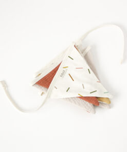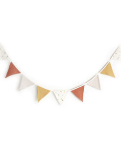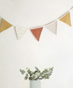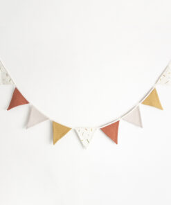 Verleihe dem Kinderzimmer oder deinem Zuhause mit der BIBAK Wimpelkette aus Stoff (Restenverwertung) | Sticks EARTH eine besondere Note. Diese Girlande besteht aus Stoffwimpeln und bringt mit ihrem natürlichen Design eine warme und einladende Atmosphäre in jeden Raum. Die Wimpel werden aus den Reststoffen der Produktion der Bibak Kollektion hergestellt.