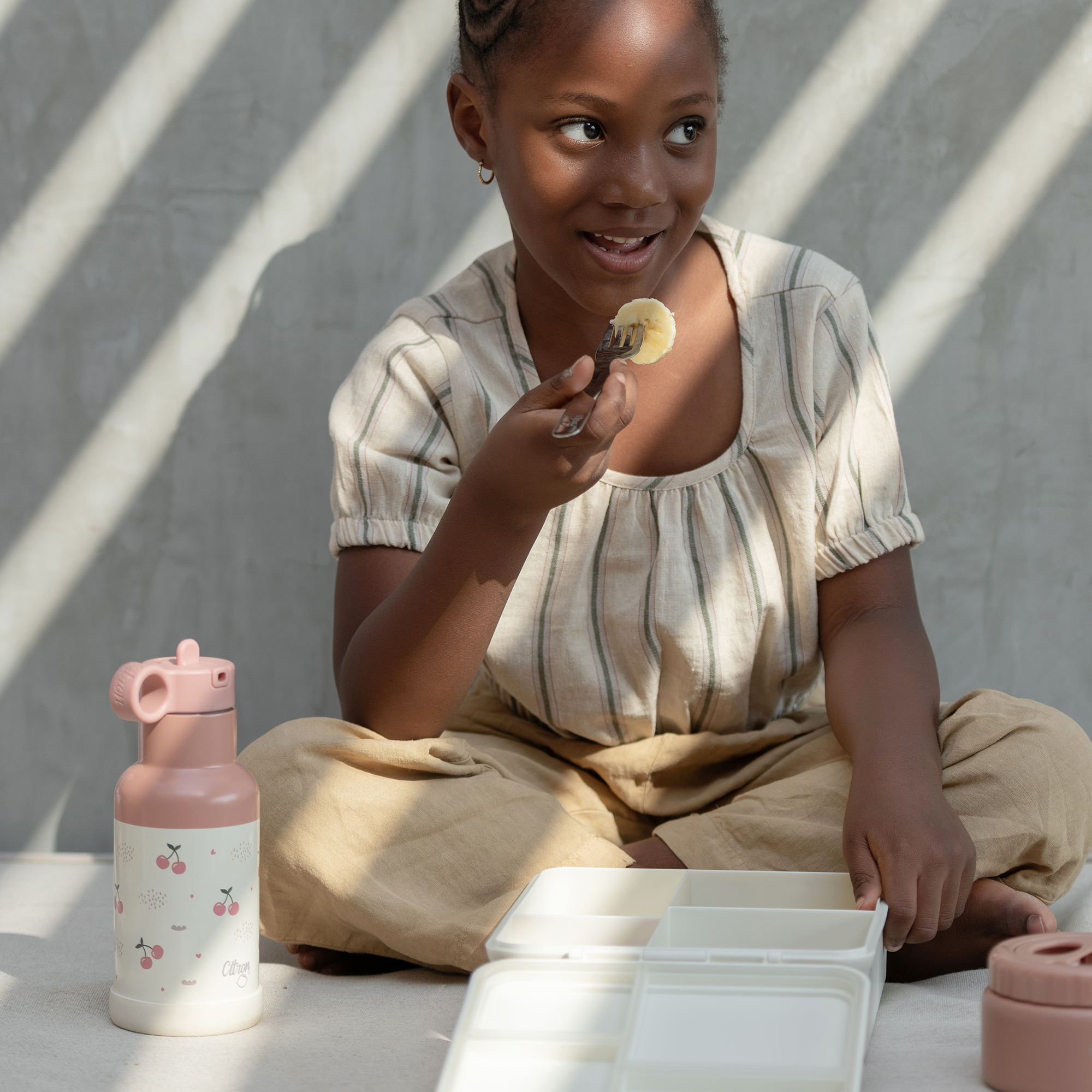 Die Citron Trinkflasche thermoisoliert 350ml (ab 12 Monaten) | Cherry ist etwas grösser als die klöeinste Variante (250 ml), dennoch gut geeignet für jüngere Kinder, die sie mit ihren kleinen Händen benutzen können und sie ist trotzdem genug gross für den Durst . Das macht die Kindertrinkflasche zu einem großartigen täglichen Begleiter als Durstlöscher. Mit dem QR-Code auf der Unterseite kann die Flasche registriert werden, so findet die Trinkflasche auch bei Verlust wieder zu euch zurück. Die Citron Trinkflasche thermoisoliert 350ml (ab 12 Monaten) | Cherry hält Flüssigkeiten 12 Stunden lang warm und 24 Stunden lang kalt. Sie ist auslaufsicher, wodurch der Rucksack trocken bleibt. Geliefert wird sie mit einer Reinigungsbürste, einem Silikonpuffer und einem extra Strohhalm. Dank QR-Technologie kann sie leicht gefunden werden. Sie besteht aus lebensmittelechtem 304er Edelstahl und nachhaltigen Materialien, frei von BPA, Phthalaten und Blei. Geeignet für Kinder ab 6 Monaten, fasst sie 250 ml und hat die Abmessungen von 7,5 cm Durchmesser und 19,7 cm Höhe.