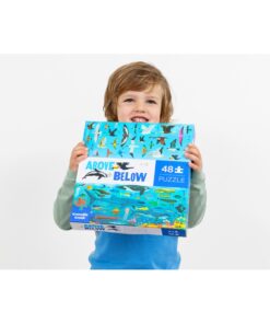 Entdecke das farbenfrohe CROCODILE CREEK Puzzle 48 PCS (ab 4 Jahren) Above & Below | Himmel & Meer! Dieses detailreiche Bodenpuzzle zeigt verschiedene Tiere aus dem Wasser und der Luft. Es fördert deine Hand-Auge-Koordination, Feinmotorik und Problemlösungsfähigkeiten.
