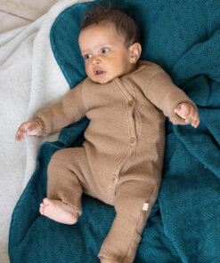 Der Disana Baby Merino Strick Overall | JADE hüllt Dein Baby in weiche, mulesingfreie Merinowolle und sorgt für kuscheligen Komfort in den ersten Monaten. Der elastische Linksstrick macht jede Bewegung mit, während die praktische Knopfleiste das An- und Ausziehen erleichtert. Umklappbare Bündchen halten kleine Füßchen warm – ideal für Ausflüge.