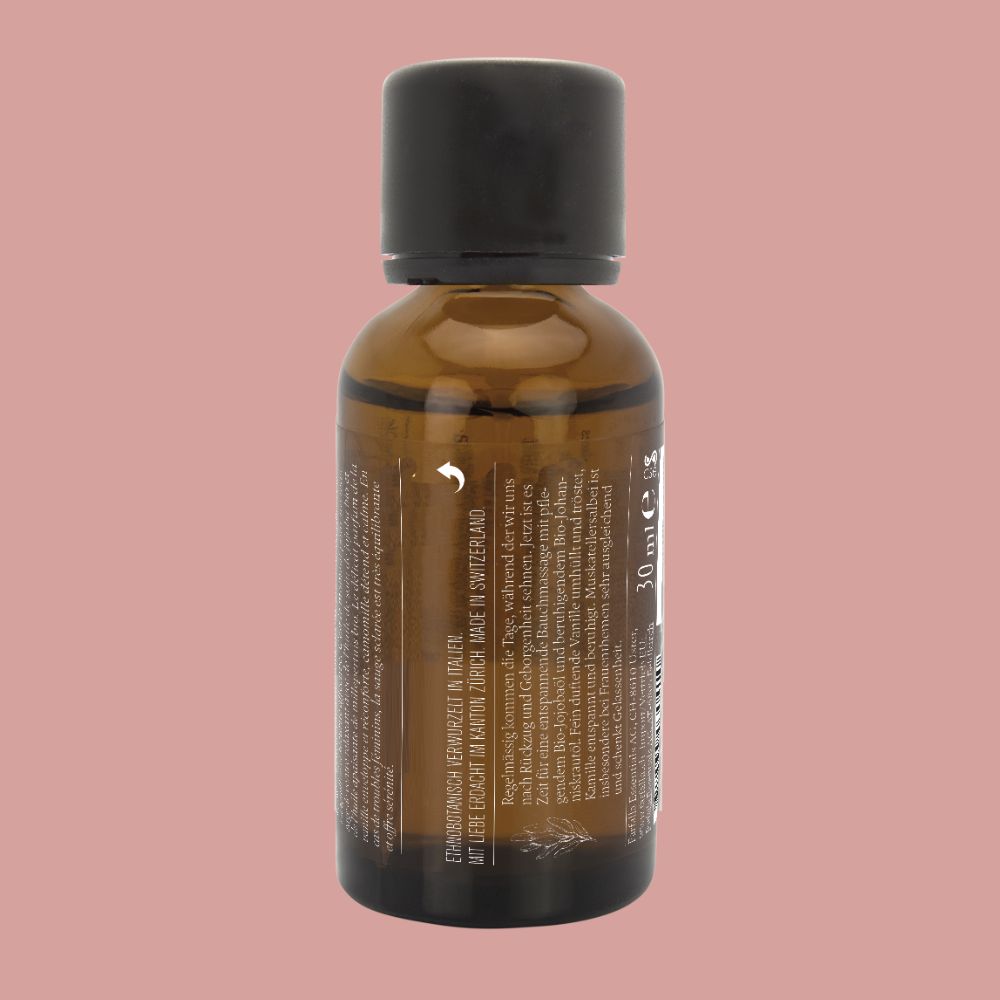 Regelmässig kommen die Tage, während der wir uns nach Rückzug und Geborgenheit sehnen. Jetzt ist es Zeit für eine entspannende Bauchmassage mit pflegendem Farfalla Frauenleben | Monatswohl Massageöl Muskatellersalbei (30ml) Bio-Jojobaöl und beruhigendem Bio-Johanniskrautöl. Fein duftende Vanille umhüllt und tröstet, Kamille entspannt und beruhigt. Muskatellersalbei ist insbesondere bei Frauenthemen sehr ausgleichend und schenkt Gelassenheit.