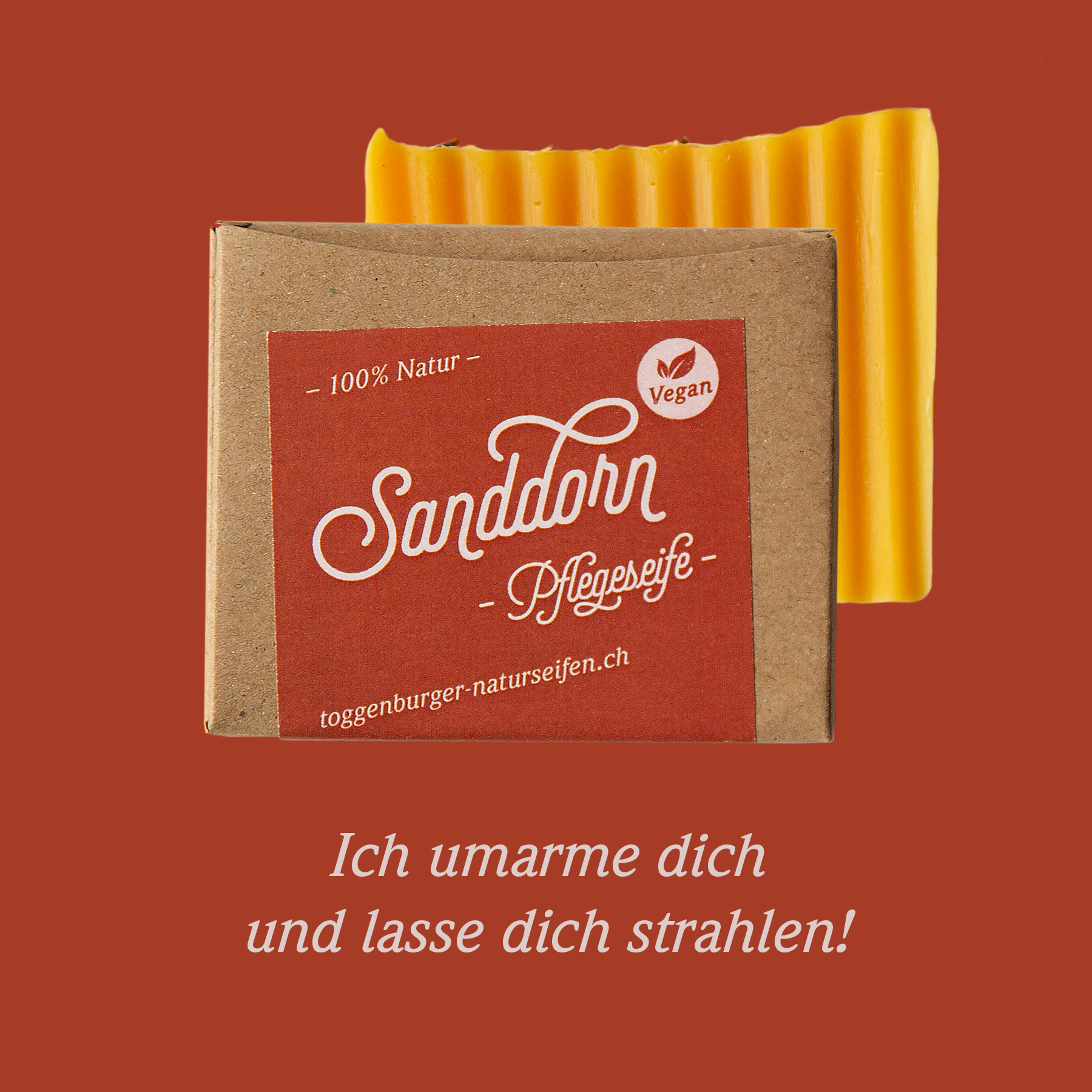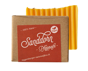 Feste Dusch- und Pflegeseife vegan | Sanddorn – 100% NATUR von Toggenburger Naturseifen