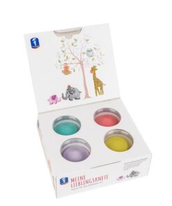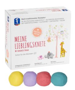 Kneten, trocknen, bemalen – mit Feuchtmann Meine Lieblingsknete 4x130g (ab 2 J.) | Pastell entstehen kleine Kunstwerke mit Pastelltönen und Herz. Die 4 grossen Portionen in der Geschenkbox sind perfekt zum kreativen Modellieren und Mischen. Sicher, vegan & allergikerfreundlich.