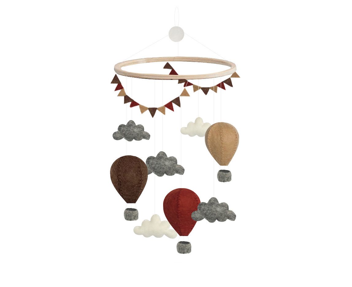 Gamcha Baby Mobile aus Filz | Heissluftballon braun
