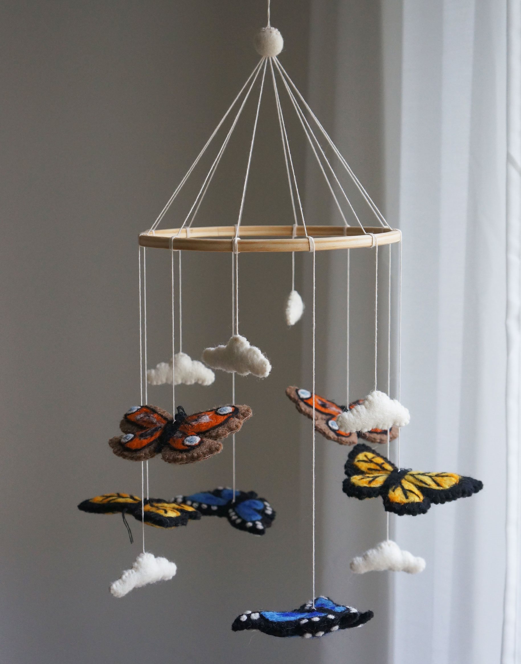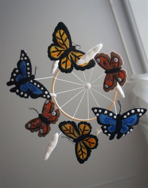 Gamcha Baby Mobile aus Filz | Schmetterlinge blau orange