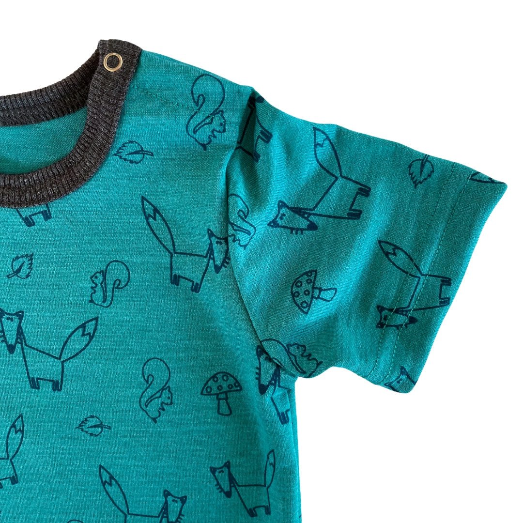 Glückskind Body kurzarm Merinowolle & Seide Fuchs | smaragd