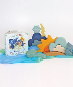 Ein liebevoll illustriertes Pappebuch, das Kinder ab 1 Jahr spielerisch mit Wetterphänomenen vertraut macht. Zweisprachig in Deutsch und Englisch, mit handgemalten Aquarellen und versteckten GRIMM’S-Spielzeugen auf jeder Seite. Ein nachhaltiger Begleiter für kleine Entdecker.
