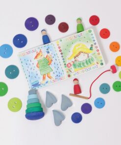 Kinder können auf jeder Seite neue Wetterbegriffe entdecken und die passenden GRIMM’S-Spielzeuge suchen. Die zweisprachige Gestaltung fördert spielerisch das Sprachverständnis und die Aufmerksamkeit.