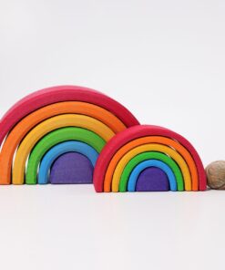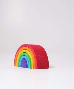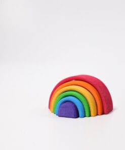 Der Grimm’s Regenbogen aus Lindenholz (ab 1 J.) | klassik (6 Teile) ist ein vielseitiges Stapelspielzeug aus Holz, das nicht nur Kinder begeistert. Mit seinen bunten, geschwungenen Bögen regt es die Fantasie an und bietet zahlreiche Spielmöglichkeiten: als Tunnel, Brücke, Haus oder abstrakte Skulptur. Das natürliche Holz und die leuchtenden Farben machen den Regenbogen zu einem besonderen Hingucker im Kinderzimmer.