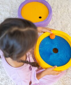 Die Kullerscheiben lassen sich in Stapelsteine einsetzen, um daraus ein spannendes Rollspielzeug zu bauen. Oder Du nutzt sie zum Stapeln, Balancieren, Dekorieren oder als kreative Elemente beim freien Spiel.