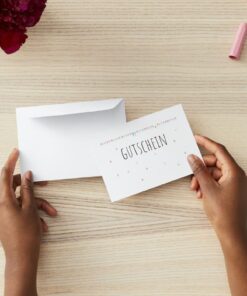 Der Gutschein wird versendet – als physisches Produkt. Postkartengrösse A6 inkl. Kuvert.