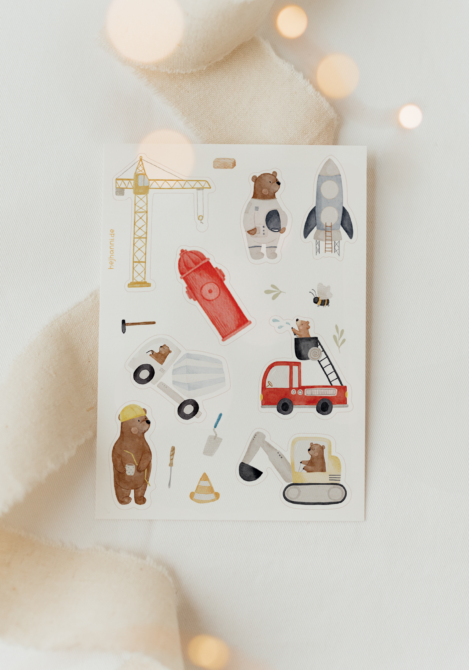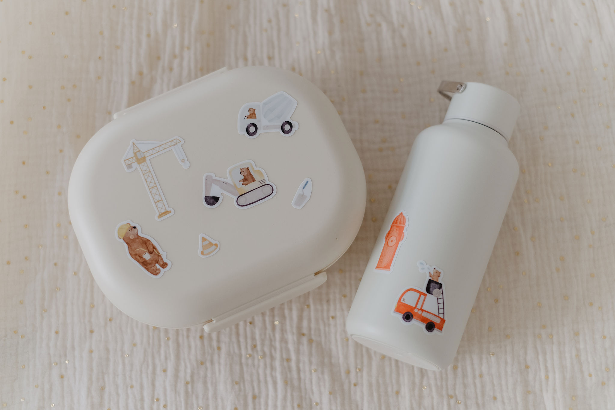 Die coolen Hej Hanni Sticker (spülmaschinenfest) | Fahrzeuge lassen sich für Lunchboxen, Trinkflaschen, Taschen und viele weitere Sachen mit glatten Oberflächen nutzen. So kann dein Kind seine Kreativität ausleben und seine Gegenstände gut kennzeichnen und individualisieren. Die süssen Illustrationen sind ein toller Hingucker auf diversen Sachen.