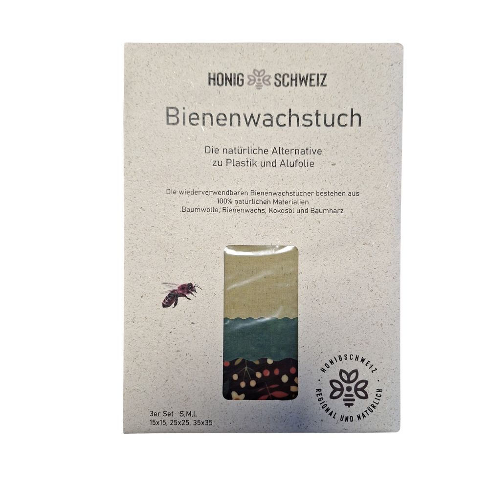 Honigschweiz Bienenwachstuch Starter 3er SET (S/M/L) | natur-grün-blume – die natürliche Alternative zu Plastik und Alufolie