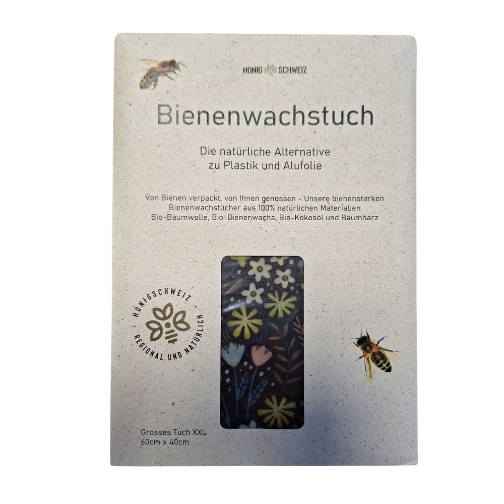 Das Honigschweiz Bienenwachstuch XL für Brot (60cm x 40cm) | Black Floral (handgemacht in Hagenbuch CH) ist die nachhaltige und natürliche Lösung, um dein Brot und andere Backwaren länger frisch zu halten. Dieses hochwertige Wachstuch wird in der Schweiz von Hand gefertigt und mit reinem Bienenwachs aus einer regionalen Imkerei veredelt. Die Kombination aus Bio-Baumwolle und lokalem Bienenwachs sorgt für eine herausragende Qualität, die sich deutlich von herkömmlichen Bienenwachstüchern unterscheidet – langlebig, geschmeidig und besonders atmungsaktiv.