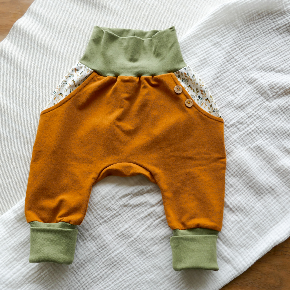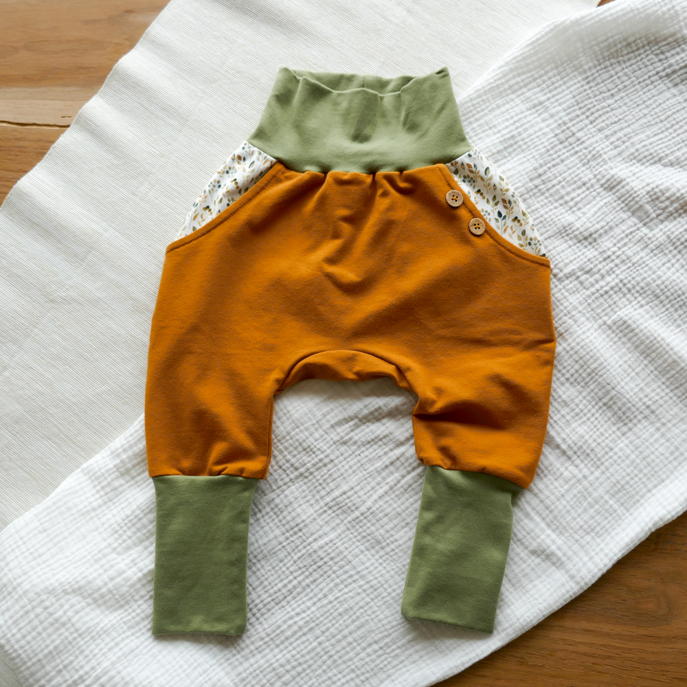 Diese Knickerbocker Hose BLATT aus weichem Bio-French Terry ist eine locker und bequem geschnittene Hose in Doppelgrössen. Die Hose passt für Liegebabys, Kleinkinder, Spielplatzhelden und Spielplatzheldinnen. Darin lässt es sich gut strampeln, krabbeln und die Welt entdecken.