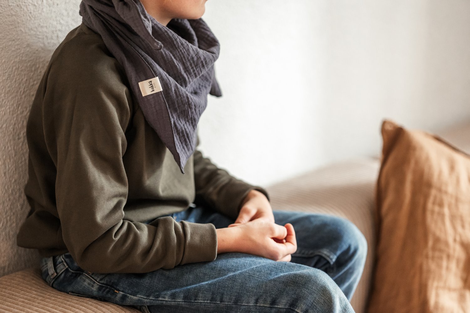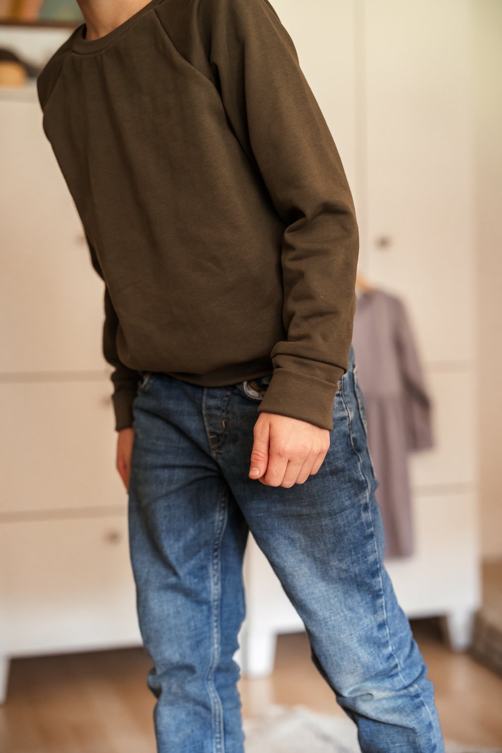 Mit seinem grosszügigen Schnitt wächst der Pullover mit deinem Kind mit und wird zum langlebigen Begleiter. Die Armbündchen sind extra lang, dass man sie auch hochschlagen kann.