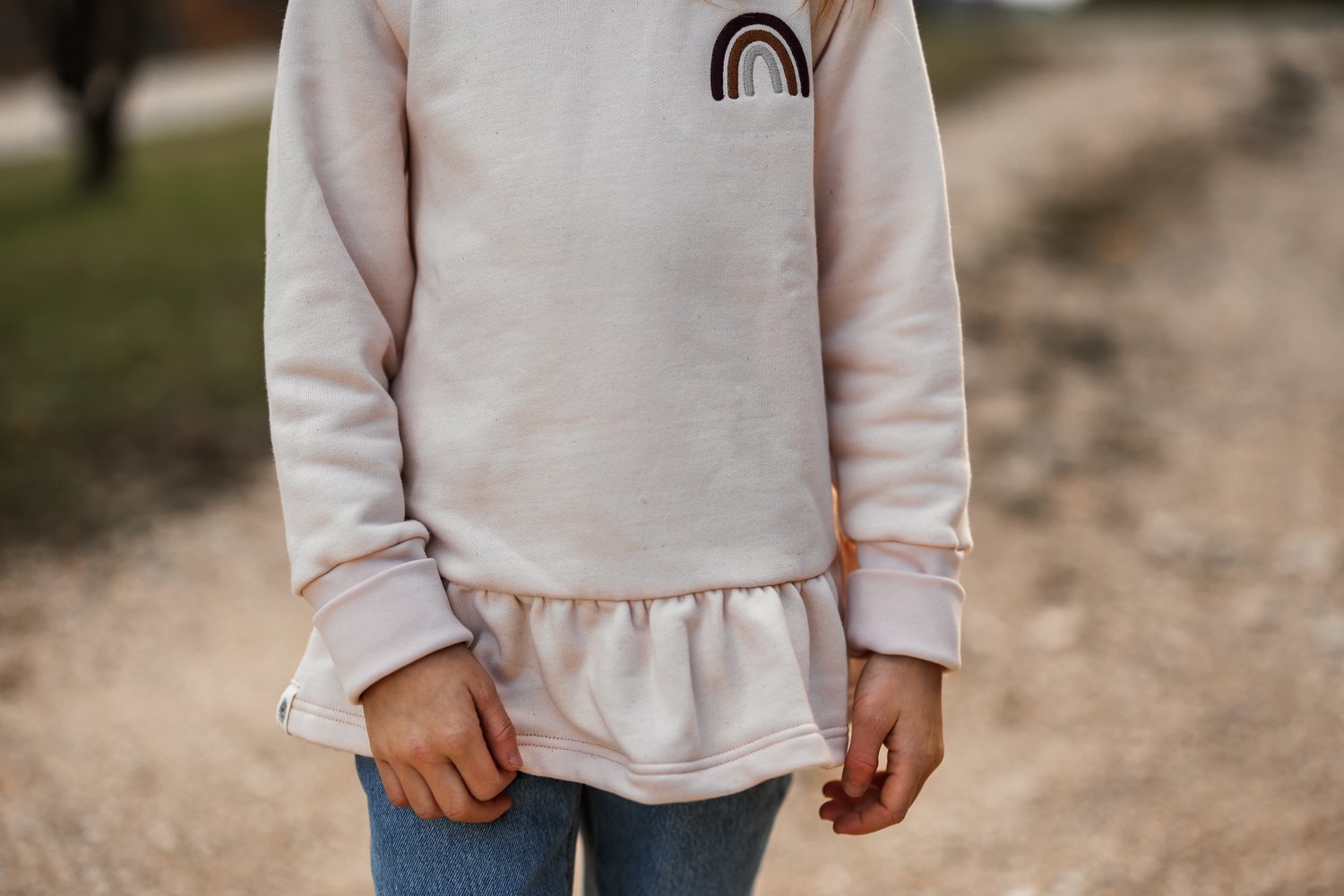Mit seinem grosszügigen Schnitt wächst der Pullover mit deinem Kind mit und wird zum langlebigen Begleiter. Die Armbündchen sind extra lang, dass man sie auch hochschlagen kann.