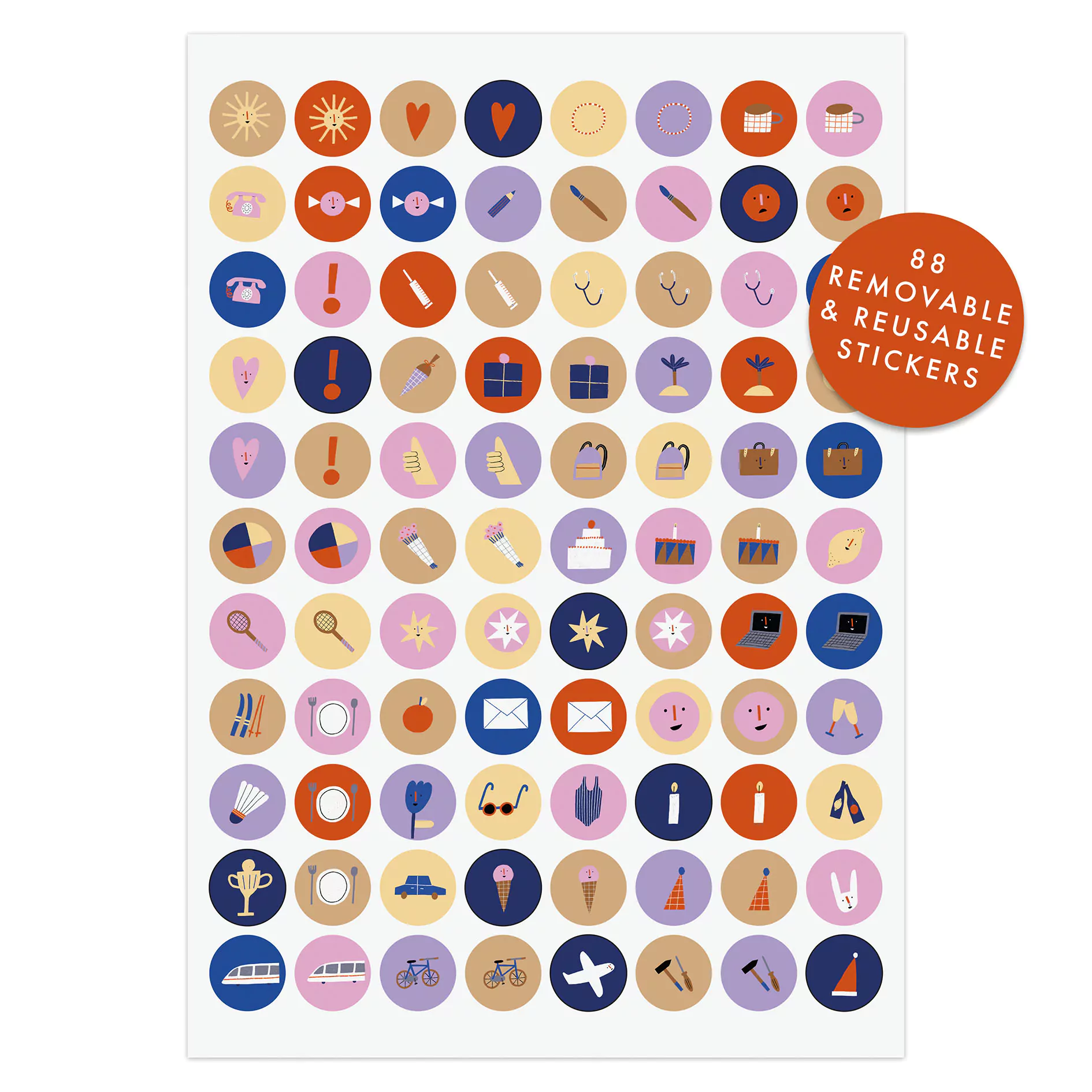 - Stickerbogen mit 88 wiederverwendbaren Stickern