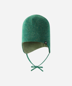 REIMA Kleinkind Baumwoll Beanie LATVAT | Deeper Green – mit Bändel & Ohr-Windschutz