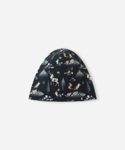 Der REIMA leichter wendbarer Baumwoll Beanie TANSSI | Black ist eine besonders leichte, bequeme und vielseitige Mütze für Kinder. Gefertigt aus weichem, elastischem Bio-Baumwolljersey bietet sie nicht nur hohen Tragekomfort, sondern auch zwei Looks in einem: Dank ihres wendbaren Designs mit Allover-Print kann Dein Kind selbst entscheiden, welche Seite gerade passt.