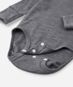 Der Reima Merino Body UTU | Melange grey besteht aus feiner, weicher Merinowolle und bietet deinem Neugeborenen oder Baby natürlichen Wärmekomfort – ganz ohne Kratzen. Dank praktischer Druckknöpfe im Schritt ist das Wickeln einfach, und flache Nähte sorgen für sanften Tragekomfort auf empfindlicher Haut. In der kleinsten Grösse (50/56) mit umklappbaren Ärmeln als Handschutz.