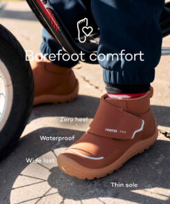 Die Reima ReimaTec Barfussschuhe Hyppii | navy sind ideal für aktive Kinder, die bei jedem Wetter unterwegs sind. Diese wasserdichten Barfußstiefel mit flexibler Sohle und extra Zehenfreiheit unterstützen einen natürlichen Gang – perfekt für Frühling und Herbst. Dank Klettverschluss lassen sie sich mühelos an- und ausziehen, während reflektierende Details für mehr Sicherheit sorgen.