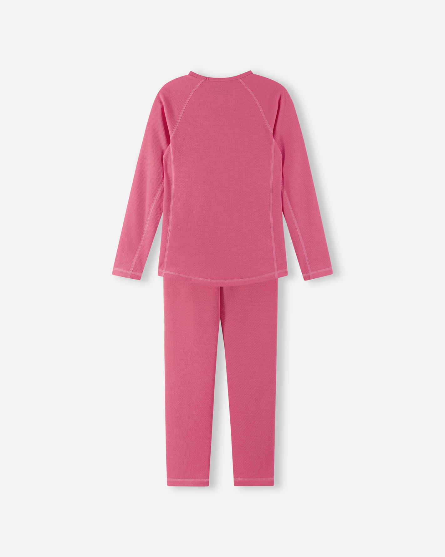 Das Reima Thermo Funktions Unterwäsche Set LANI | soft coral ist die perfekte Basis für aktive Kinder an kalten Tagen. Es besteht aus einem langärmeligen Oberteil und einer passenden Hose aus hochwertigem THERMOLITE®-Material, das Feuchtigkeit zuverlässig von der Haut wegtransportiert. Flache Nähte, ein längerer Rückensaum und die elastische Passform sorgen für ganztägigen Komfort – beim Spielen, Sport oder Wintersport.