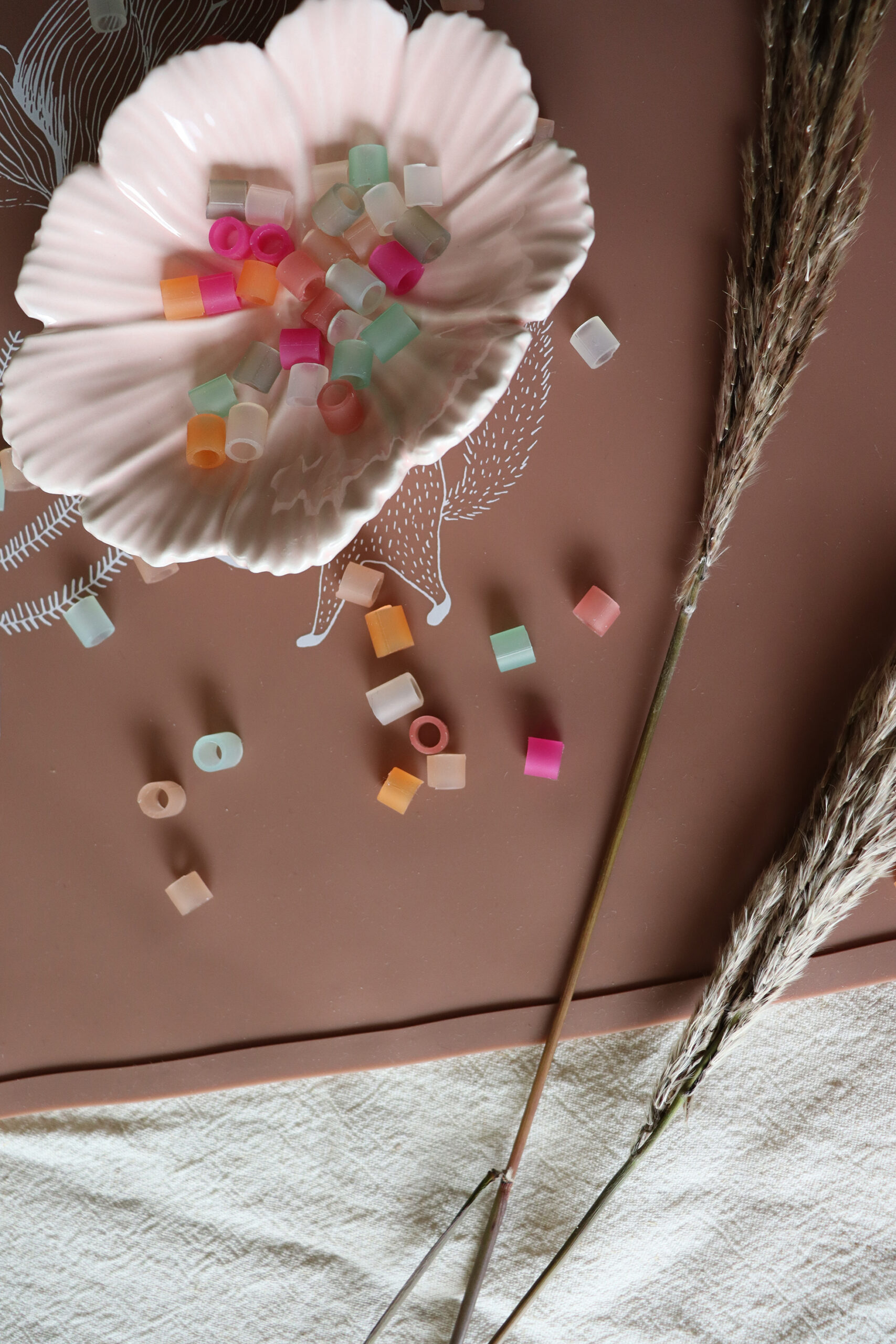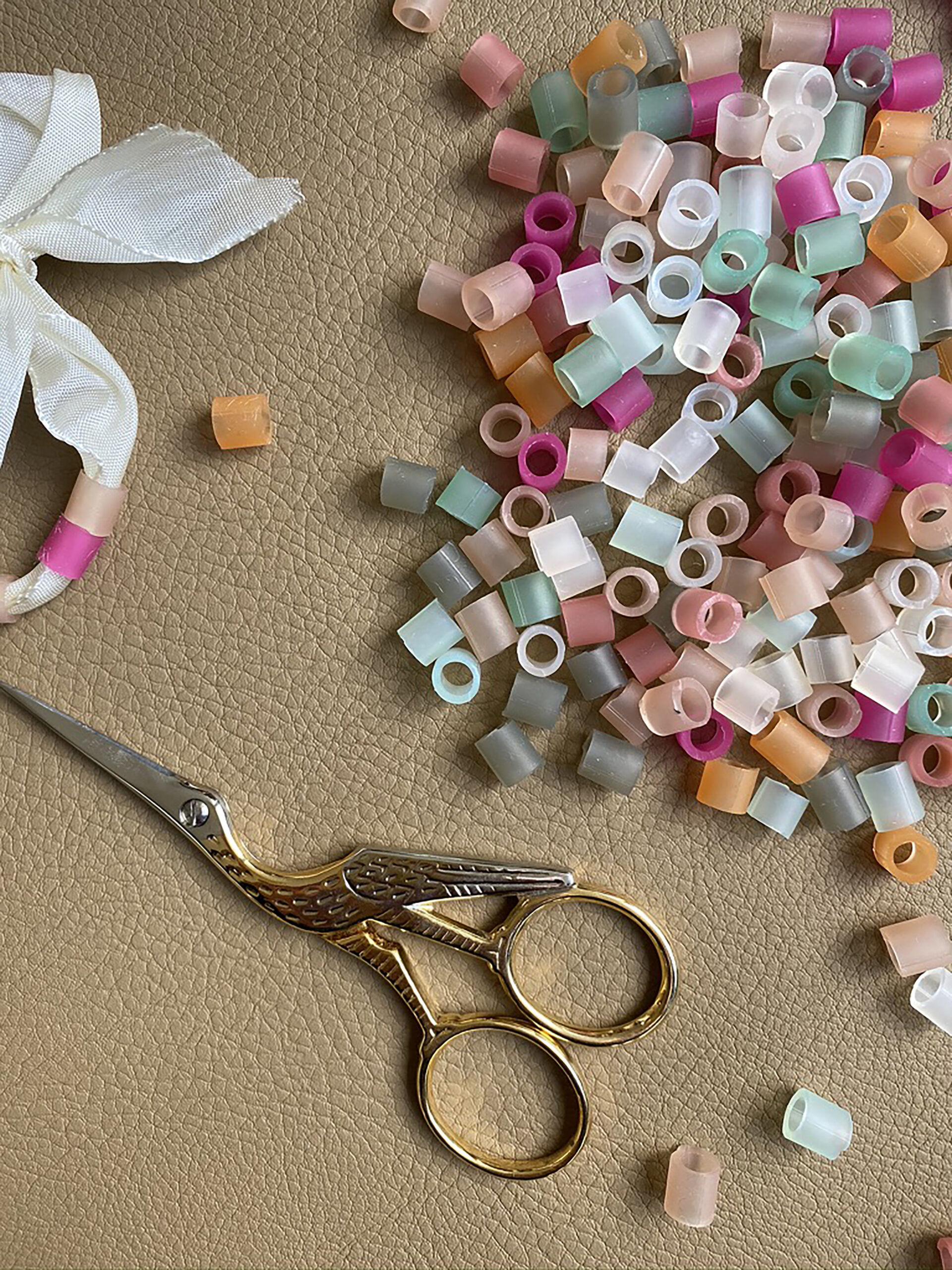 Die praktische Packung mehrfarbiger feiner Silikon Perlen für Schmuck, Haarschmuck und alles andere, was die Fantasie zulässt. Die Perlen werden aus den Resten von Strohhalmproduktion hergestellt und sind zu 100 % ein ZERO WASTE Produkt.