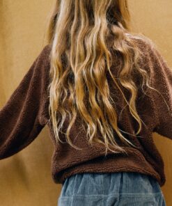 Dieses kuschelige Tiralahilacha Kinder unisex Sherpa Sweatshirt (Bio-Baumwolle) TANIT | Braun aus 100 % GOTS-zertifizierter Bio-Baumwolle ist wie gemacht für kalte Wintertage. Weich, warm und leicht – mit lockerer Passform, überschnittenen Schultern und elastischen Bündchen für maximalen Komfort und Bewegungsfreiheit.