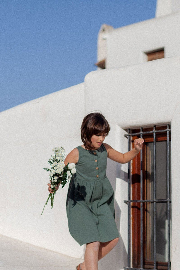 Tiralahilacha Kinder Wende Kleid Kurzarm Musselin EDLIN | Green – nachhaltig & vielseitig