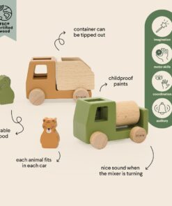 - Set aus Betonmischer & Kipplaster aus FSC®-zertifiziertem Holz (Buche)
