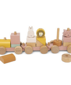 Alle einsteigen! Diese liebevoll gestaltete Trixie Holz Eisenbahn mit Tieren (ab 18m +) | Katze lädt Kinder ab 18 Monaten zu fantasievollen Reisen ein. Mit bunten Steckbausteinen lassen sich individuelle Waggons gestalten – einfach an der Kordel ziehen und los geht’s ins Abenteuer!
