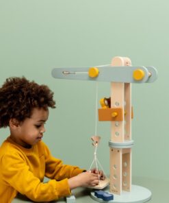 Einfach die Plattform beladen, Lasten heben und gezielt platzieren – Kinder entwickeln spielerisch ihr technisches Verständnis und erleben eigene Bauabenteuer.