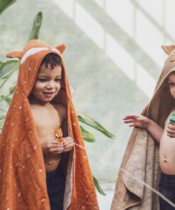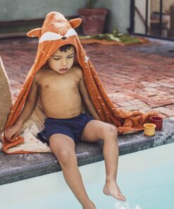 Nach dem Baden über den Kopf ziehen, einwickeln und wohlfühlen. Die Kapuze hält den Kopf warm, das grosse Tuch schützt und trocknet zuverlässig – perfekt für gemütliche Badeabenteuer zu Hause oder unterwegs.