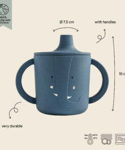 Der Trixie Silikon Trinklernbecher | Elefant im niedlichen Design ist perfekt für kleine Kinderhände und unterstützt spielerisch das eigenständige Trinken. Dank der ergonomischen Griffe kann dein Kind den Becher sicher halten, während das bruchsichere Silikon für maximale Sicherheit sorgt. Ideal für den Alltag, da der Becher spülmaschinengeeignet und vielseitig einsetzbar ist.