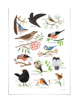 VIERUNDFÜNFZIG Poster DIN A3 | Heimische Vögel
