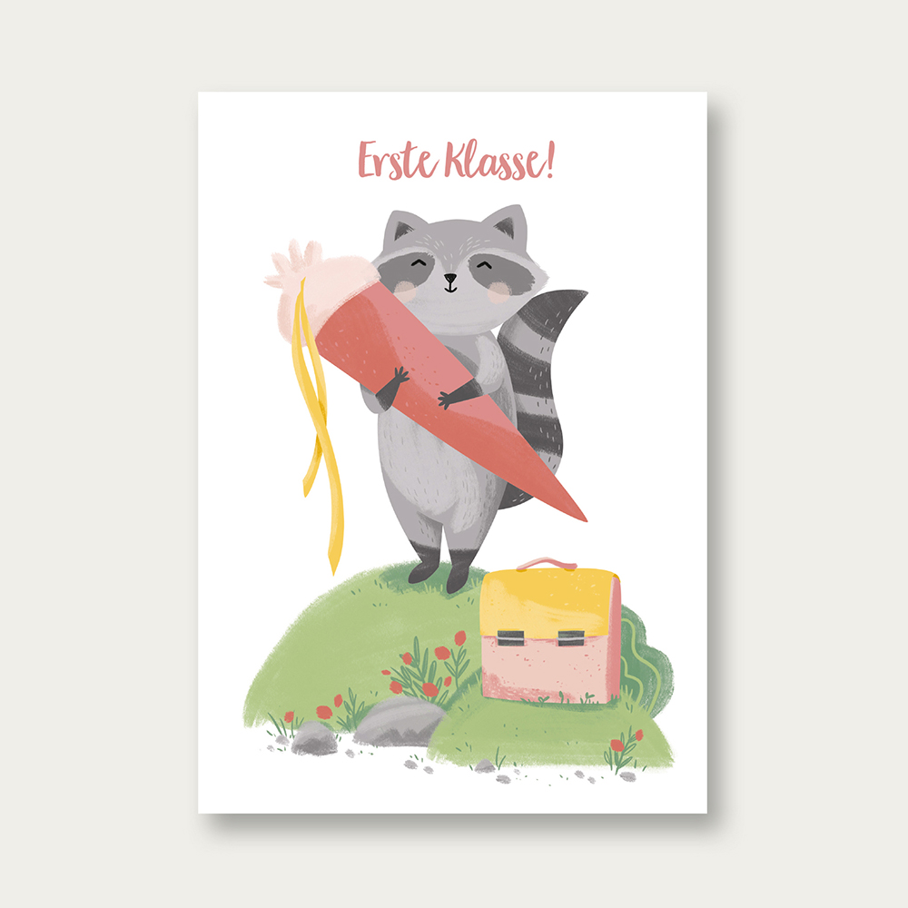 VIERUNDFÜNFZIG Postkarte | Schulanfang Waschbär
